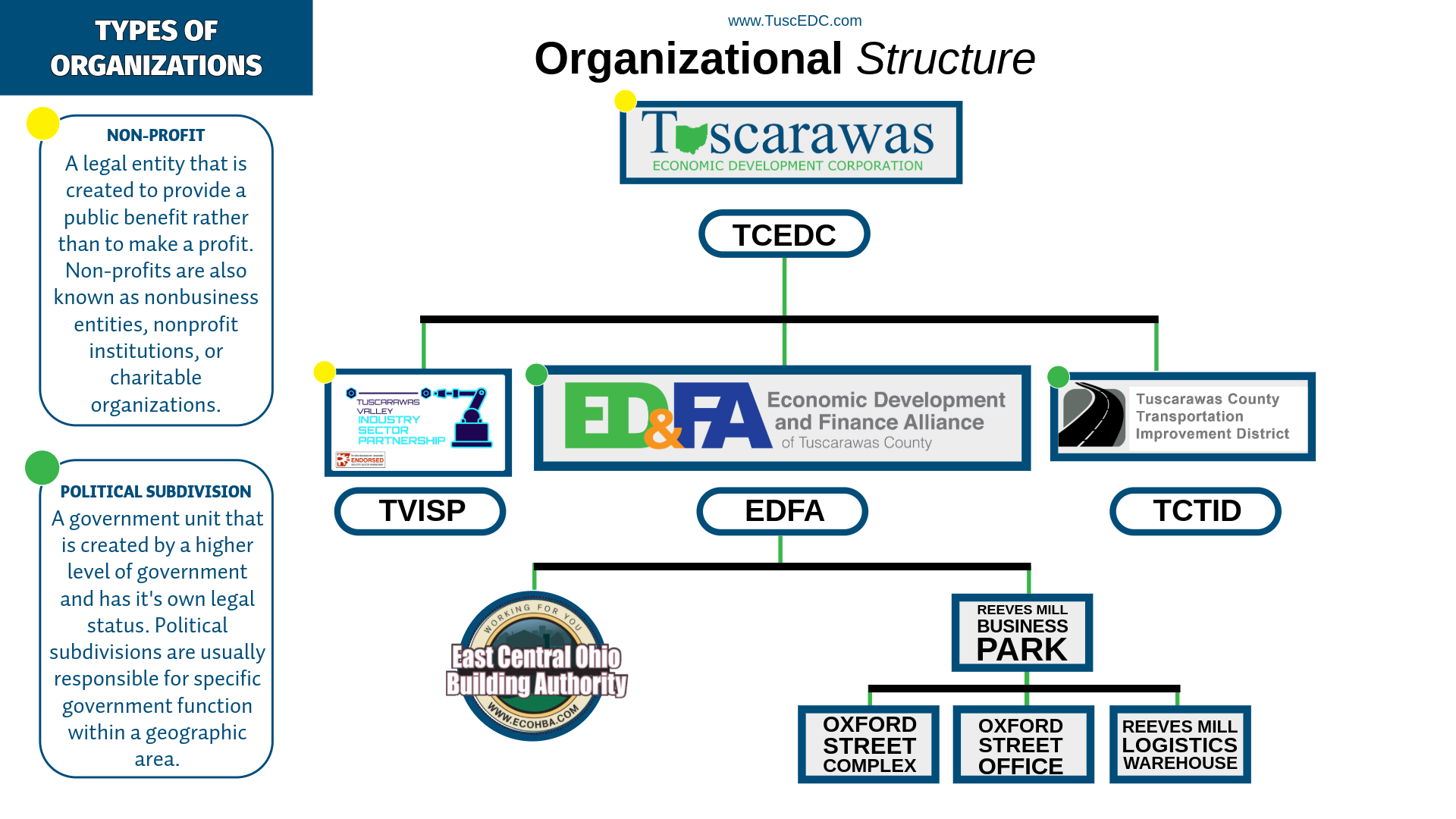As a 501(c)(3) non-profit organization, the Tuscarawas County Economic Development Corporation (TCEDC) is dedicated to fortifying the local economy through strategic investment and support. We provide commercial businesses and developers with a comprehensive suite of financial tools, economic resources, and vital data designed to fuel growth. Furthermore, the TCEDC manages the Economic Development & Finance Alliance (EDFA)—formerly the Tuscarawas County Port Authority—positioning us as your definitive single point of contact for all economic development needs in the region.