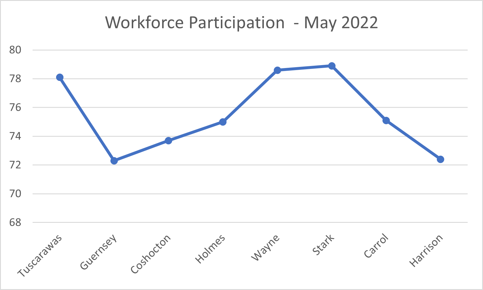 According to numbers from the Department of Labor, our workforce participation rate also fairs better than most of our neighbors, as we have 78.1% of eligible people going to work. This is behind only Wayne and Stark Counties, respectively checking in with 78.6% and 78.9%.