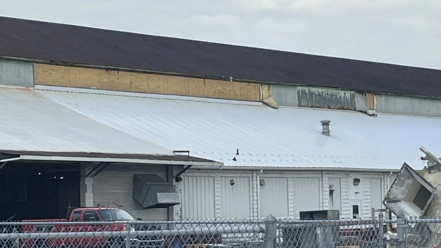 High-wind events have caused structural and aesthetic damage to the upper vertical wall sections of the facility. Temporary plywood sheeting has been installed to mitigate weather intrusion; however, a permanent, engineered solution is now required to match the existing industrial facade and ensure long-term structural integrity.